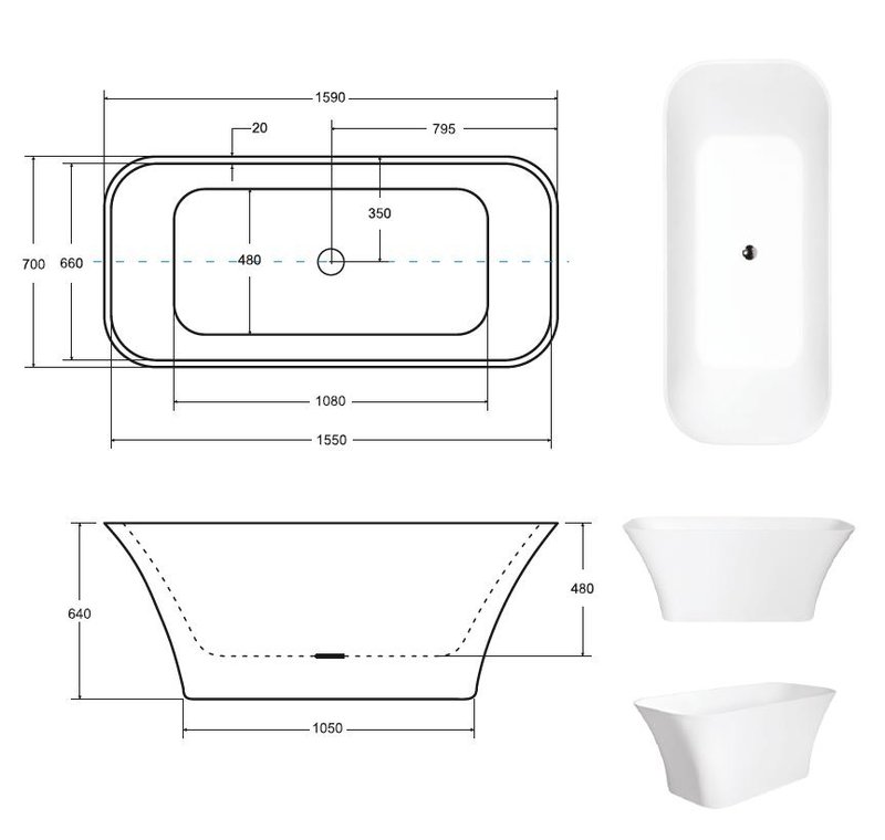 Dompel uzelf onder in luxe met ons exclusieve vrijstaande ligbad van acrylbadkuip, met de afmetingen van 160x70 cm. Dit prachtige badkuip is ontworpen met stijl en comfort in gedachten, waardoor het een perfecte aanvulling is voor elke moderne badkamer. Vervaardigd van hoogwaardig acrylmateriaal, biedt dit ligbad duurzaamheid en langdurige kwaliteit. De optionele toevoegingen zoals de vrijstaande kraan, passende sifon en hoofdsteunen zorgen voor een extra niveau van gemak en ontspanning, waardoor uw badervaring nog aangenamer wordt.
