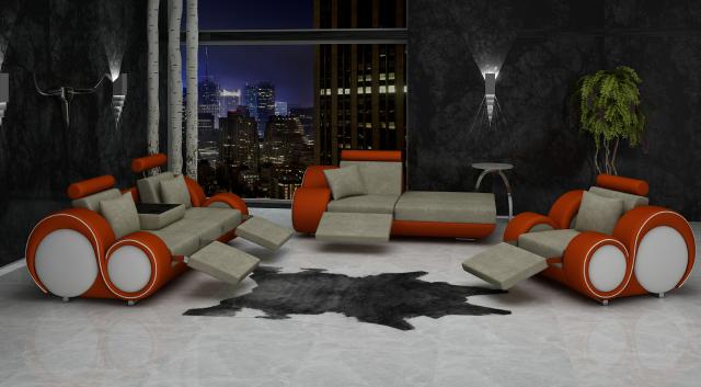 Sofa set van leer & textiel stof + USB, bankstel 3+ chaise + 1 woonlandschap
