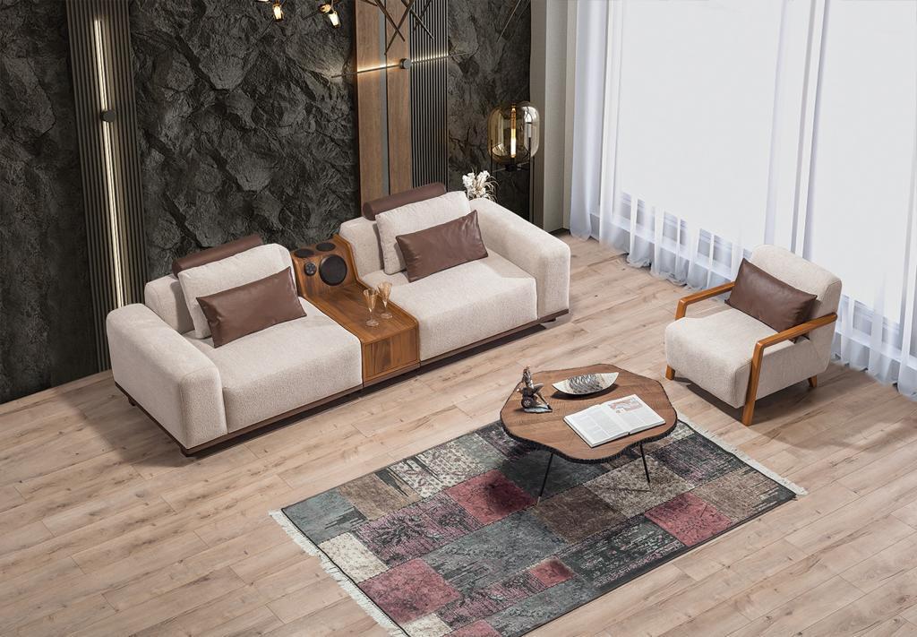 Beige bankstel Moderne luxe banken 3+2 zits Kussenstoel 3-delige set