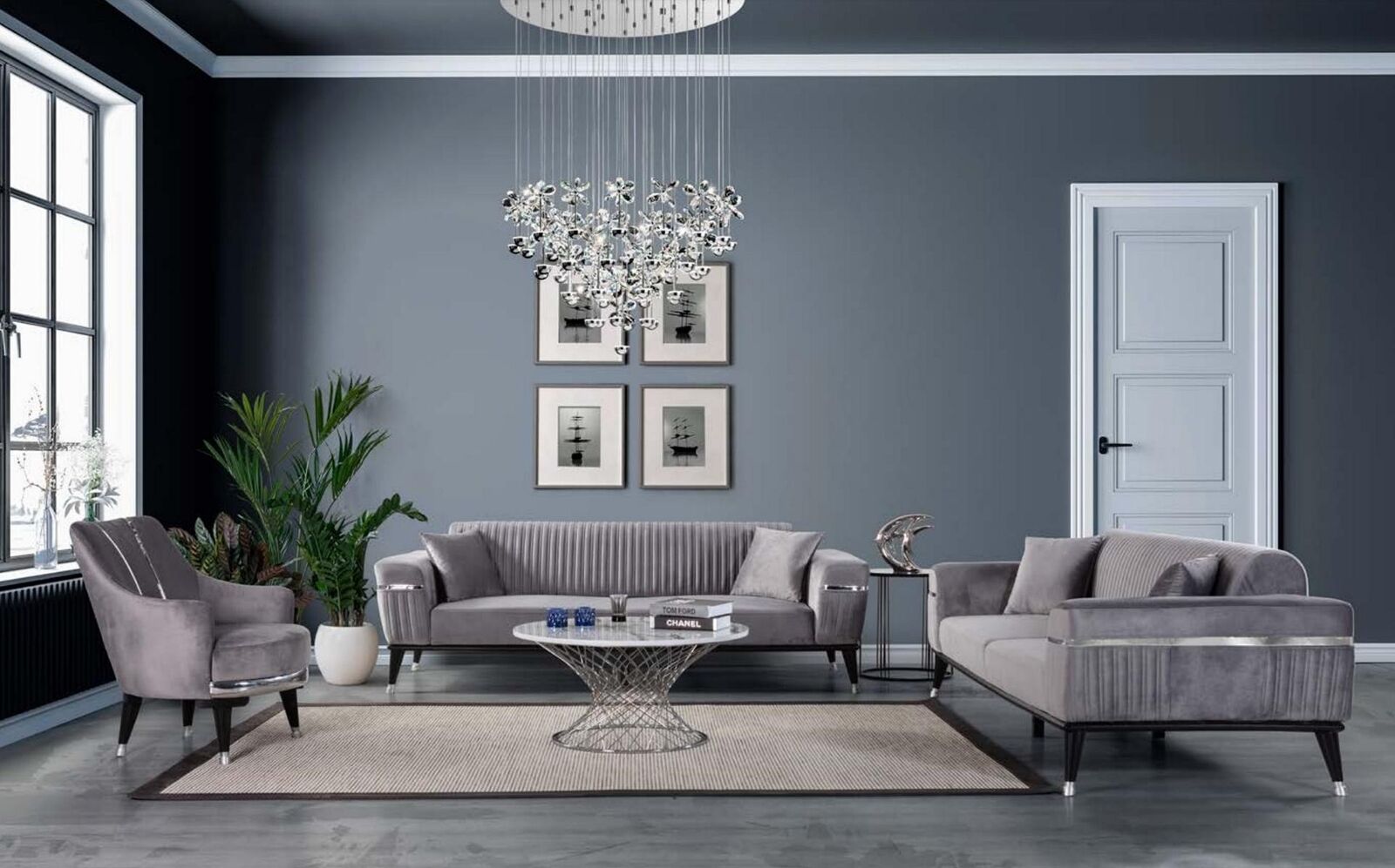 Bankstel 3+3+1 zitsbank Banken Fauteuils Stof Hout Grijze Banken