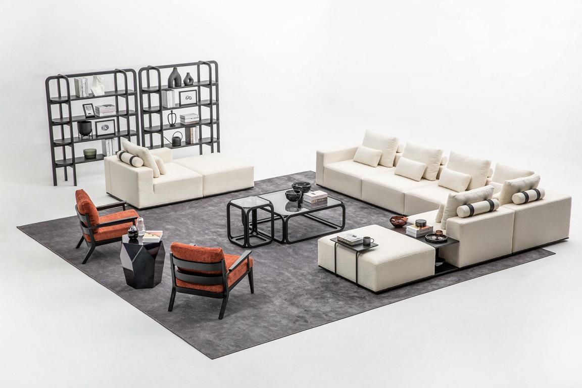 Modern set voor de woonkamer, L-vormige hoekbank, fauteuil, modulaire banken