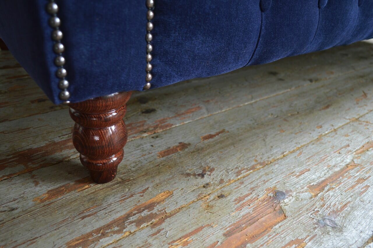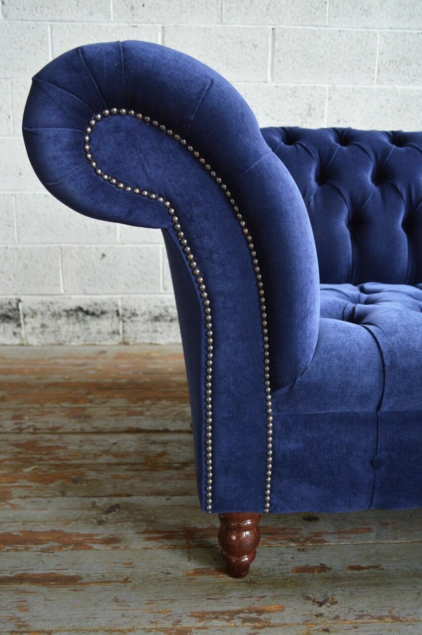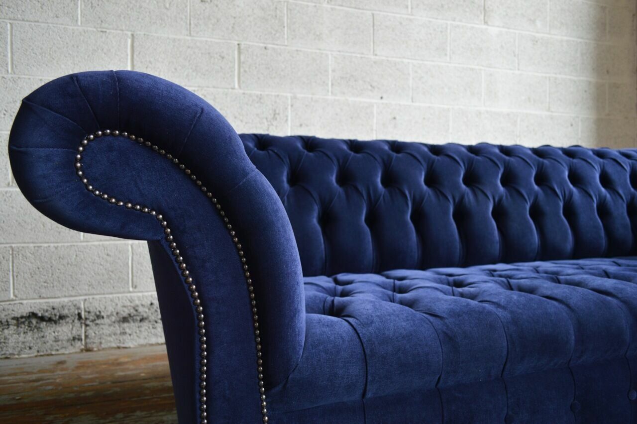 Blauw Chesterfield bank bankontwerp gestoffeerde banken stoffen textiel leer