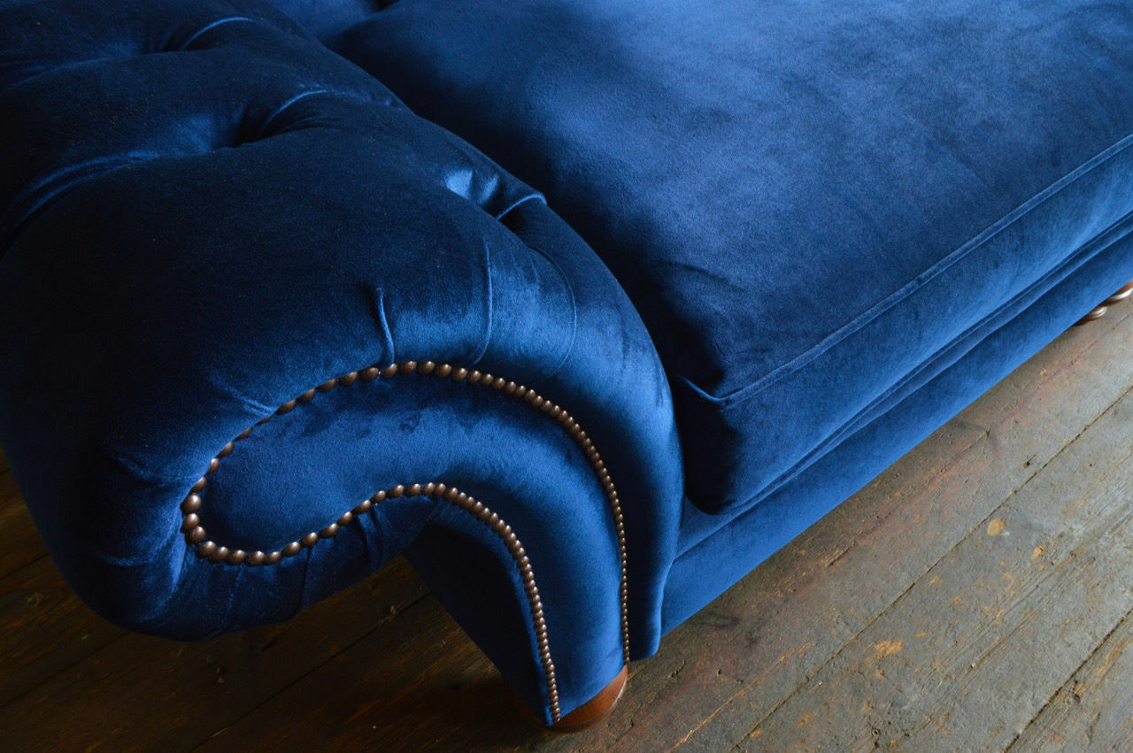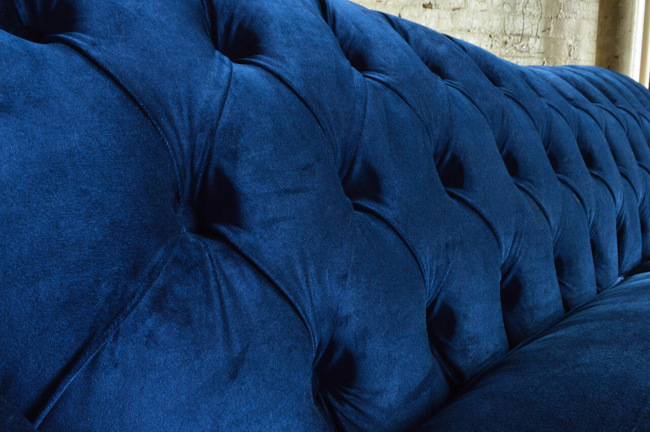 Ontwerpbank 4-zitsbank Textiel bekleding Blauw Klassieke banken Chesterfield Nieuw