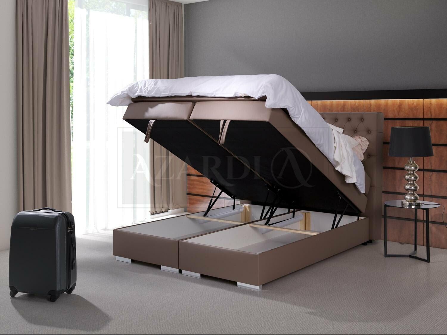 In de winkel heeft u de mogelijkheid om het bed aan te vullen met een matras, lattenbodem en zelfs een heffingsysteem en opbergbank voor extra gemak. De keuze voor premium materialen zoals Italiaans rundleer en Swarovski kristallen biedt een ongeëvenaard niveau van luxe en verfijning. Of u nu op zoek bent naar een klassiek hotelbeddesign of een stijlvol accent in uw slaapkamer, dit gestoffeerde bed biedt de perfecte balans tussen comfort, duurzaamheid en elegantie.