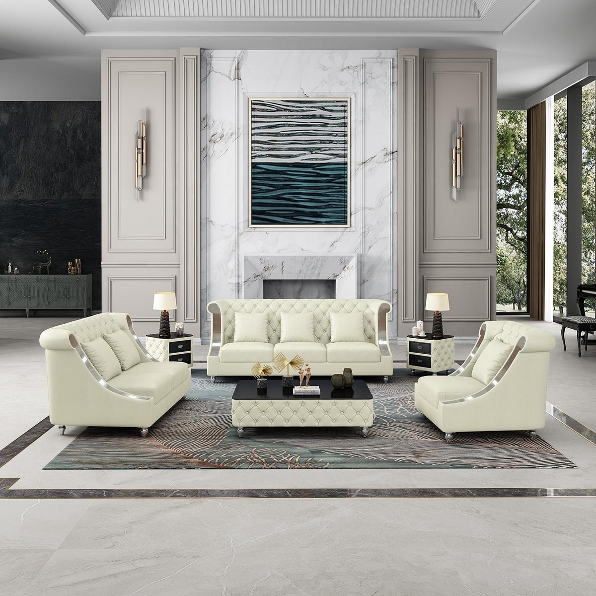 Deze bankenset is volledig aanpasbaar aan jouw wensen dankzij de mogelijkheid om tussen verschillende premium bekledingsmaterialen te kiezen, waaronder echt leder en textiel, tegen een meerprijs. Of je nu op zoek bent naar een comfortabele zithoek voor gezellige avonden met familie en vrienden of een stijlvolle toevoeging aan je interieur, deze Sofaset biedt het allemaal. Met zijn ruime afmetingen en diepe zitvlakken is deze bank perfect voor ontspanning en biedt hij tegelijkertijd een hoogwaardige afwerking die jarenlang meegaat. Kies voor tijdloze klasse en comfort met deze Sofaset 3 2 1 zits ontwerp bank bank stofferen bank modern.