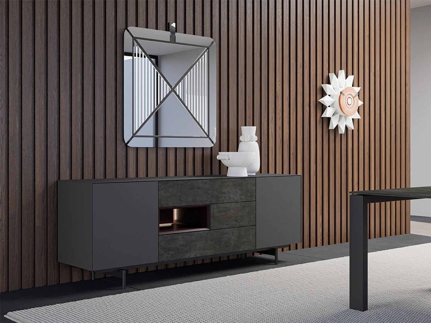 Eetkamer, eettafel, stoelen, dressoir, spiegel, kast
