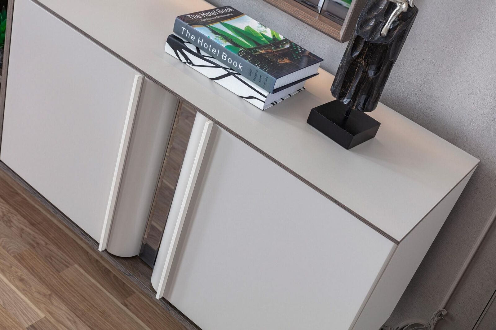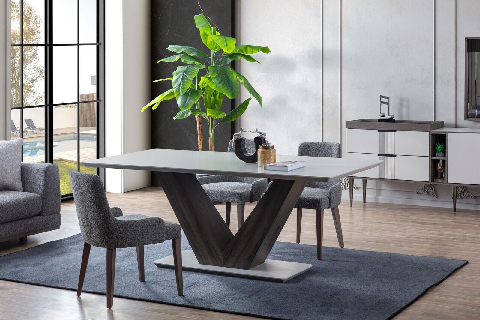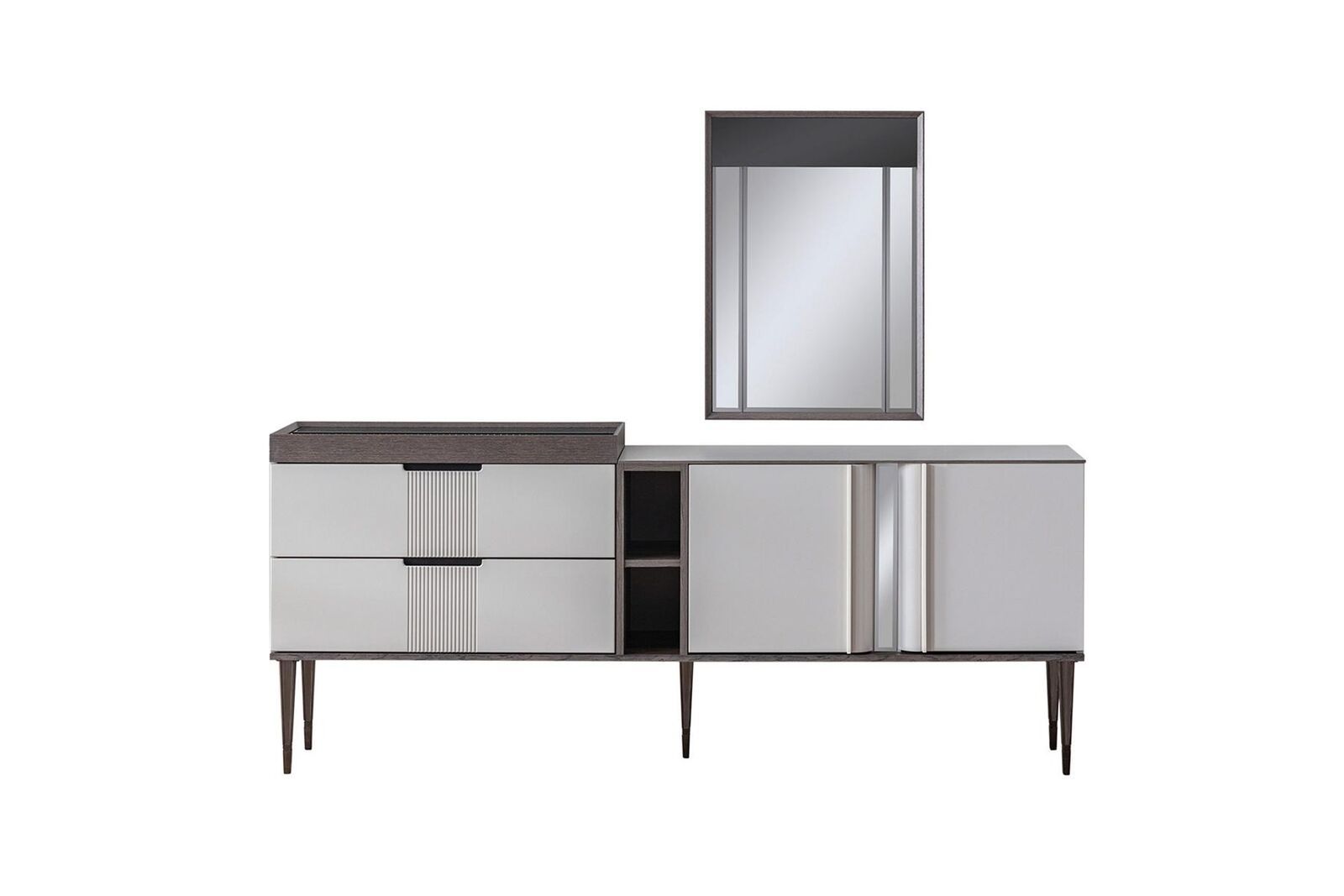 Inricht uw eetkamer met deze luxe eetkamerset en geniet van gezellige diners met vrienden en familie. De eettafel biedt voldoende ruimte om te genieten van heerlijke maaltijden en de stoelen zijn ontworpen voor maximaal comfort. Het dressoir is perfect voor het opbergen van servies en tafellinnen, terwijl de elegante spiegel een gevoel van ruimte en licht toevoegt aan de kamer. Deze set is ideaal voor iedereen die op zoek is naar een complete en stijlvolle eetkamerinrichting. Maak van uw eetkamer een plek waar u graag samenkomt voor gezelligheid en culinaire avonturen.