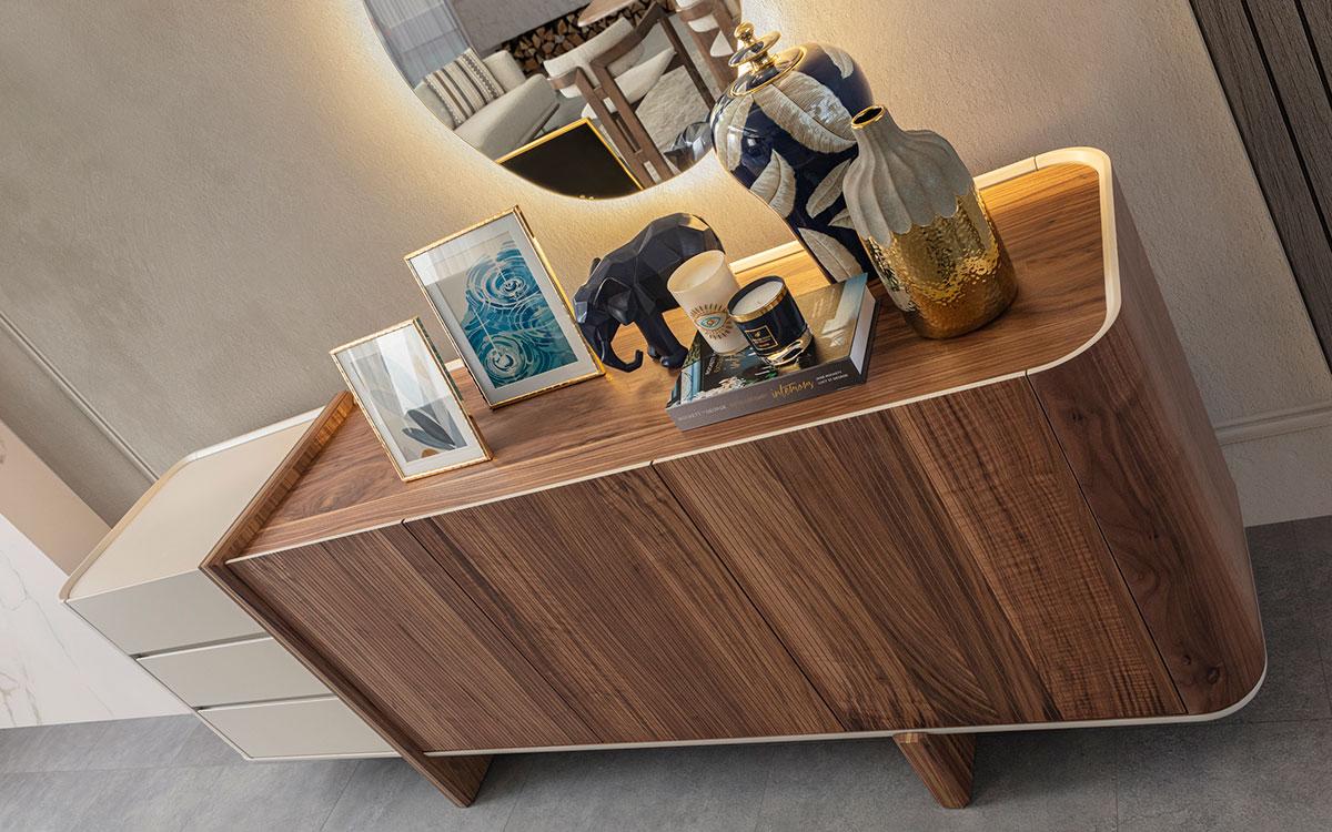 Modern eetkamerset Eettafel 4 stoelen Dressoir Spiegel Designmeubels