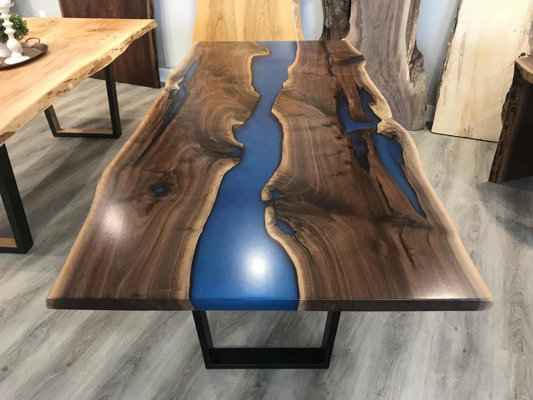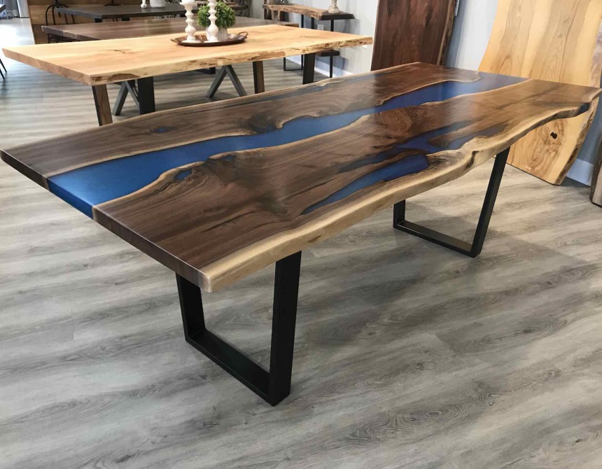 Epoxidtafel, natuurhouten tafel, eettafel, massief houten tafel