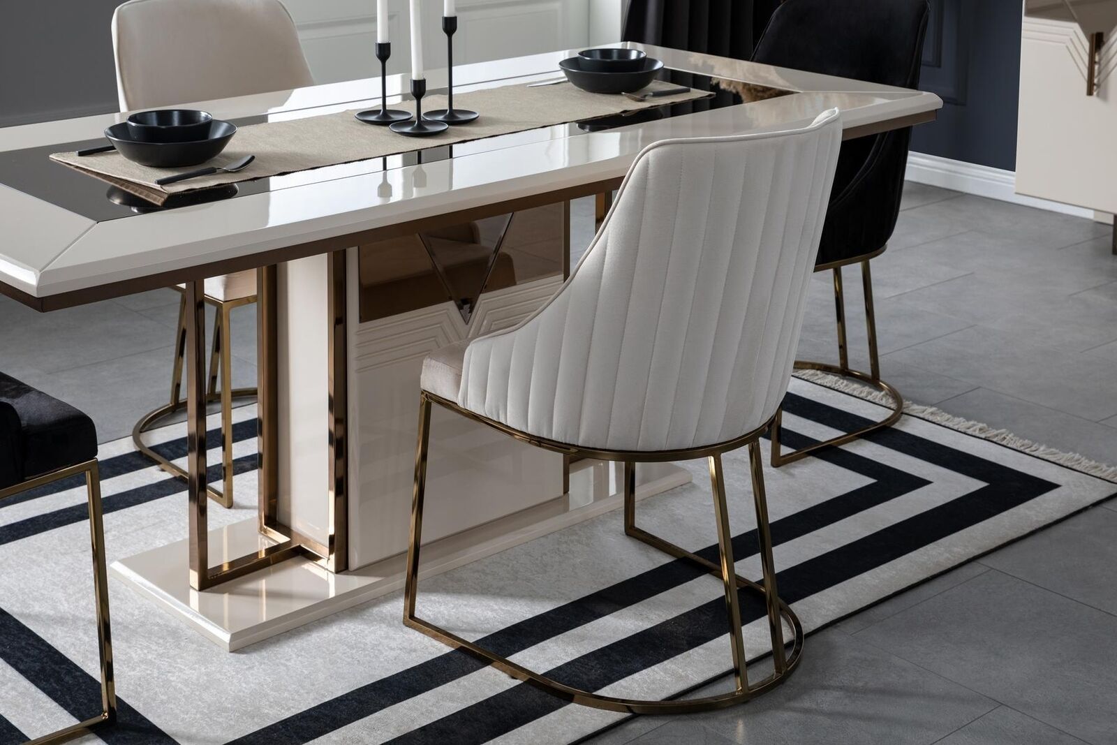 Deze eethoek set is ideaal voor gezellige familiemaaltijden, diners met vrienden of zelfs voor professioneel gebruik in een restaurant of café. Het luxe witte design past perfect bij zowel moderne als klassieke interieurs en biedt een eigentijdse touch aan elke ruimte. Geniet van comfortabele zitplaatsen tijdens lange gesprekken of uitgebreide diners, terwijl het hoogwaardige materiaal zorgt voor duurzaamheid en stijlvolle uitstraling. Voeg een vleugje klasse toe aan jouw eetkamer met deze veelzijdige en elegante eethoek set.