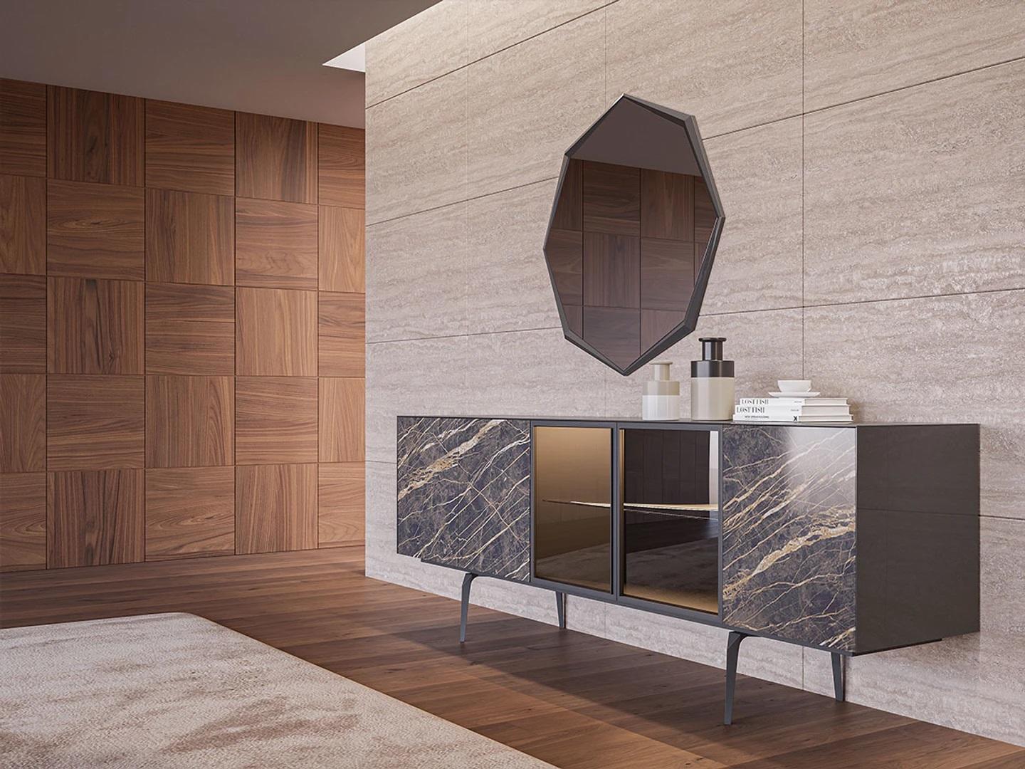 Luxe eetkamer compleet eettafel 4x stoelen inrichting dressoir met spiegel.