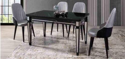 De Tafel Eettafel Meubels Eetset Eetkamer Set Tafel 4x stoelen 5-delig is een prachtige toevoeging aan uw eetkamer. Met de moderne en elegante uitstraling van deze set kunt u genieten van stijlvolle diners en gezellige familiemaaltijden. De eettafel heeft een ruime afmeting van ca. 140 x 80 x 76 cm en is uitbreidbaar naar 185 cm, waardoor er genoeg ruimte is voor al uw gasten. De bijbehorende 4 stoelen van ca. 55 x 50 x 90 cm bieden comfort en ondersteuning tijdens lange eetmomenten. De combinatie van hout, textiel en marmer zorgt voor een duurzame en luxe uitstraling die perfect past in elke moderne eetkamer.