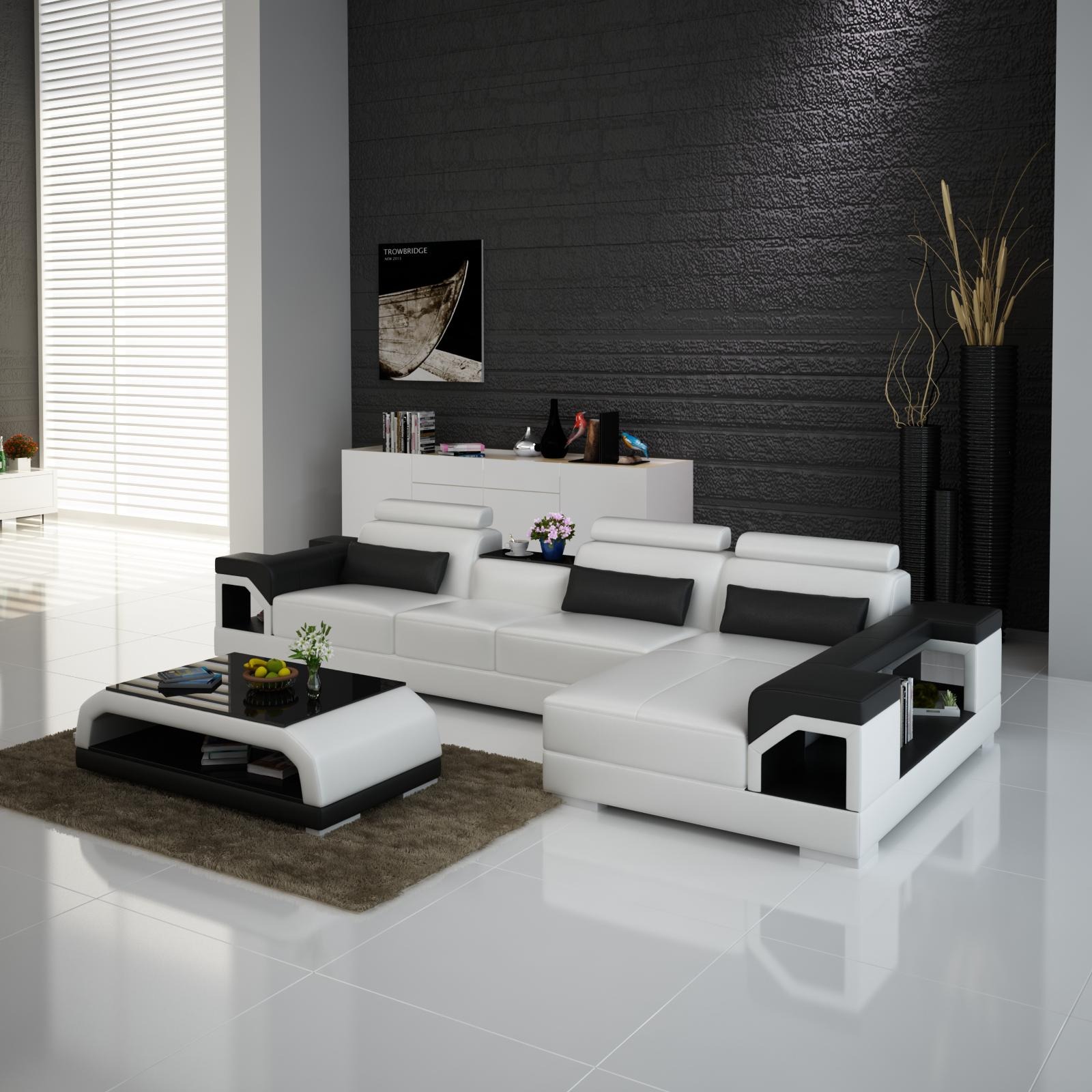 Hoekbank van leer met USB in modern design, L-vormige woonset.