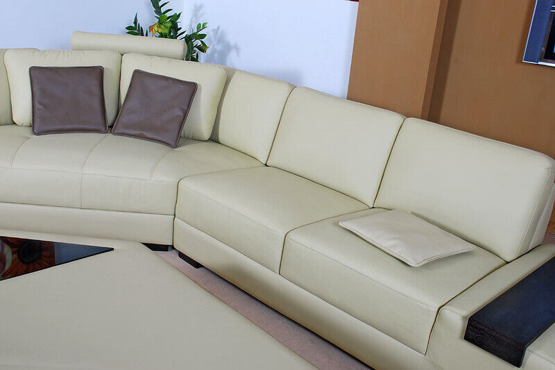 Ontwerpersbank bank hoekbank met voetenbank stel gestoffeerde woonlandschap is een luxueuze en veelzijdige hoekbank die zorgt voor een elegante toevoeging aan elk interieur. Met afmetingen van 344 x 336 x 93 cm biedt deze L-vormige hoekbank voldoende ruimte om te ontspannen en te genieten van comfortabele zitervaring. De bank is vakkundig vervaardigd met een Premium ledervezelstof (70% leder / 30% polyester), waardoor duurzaamheid en stijl samenkomen. De zithoogte van 42 cm en zitdiepte van 58 cm zorgen voor een ergonomische en comfortabele zitpositie, terwijl het binnenframe van echt hout zorgt voor stevigheid en stabiliteit.