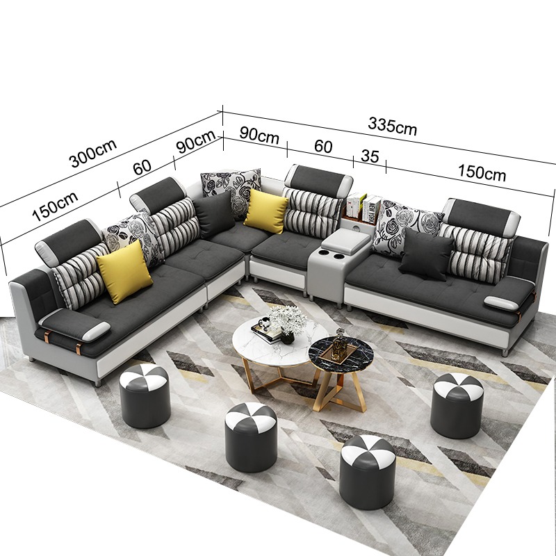 Hoekbank, betaalbare L-vormige bank, hoogwaardige materialen, houten meubelen.