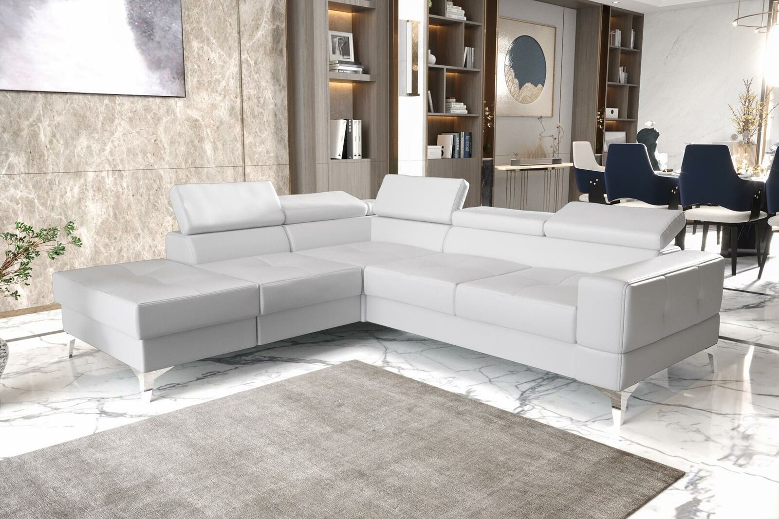 Inclusief beddengoed en optionele ondergrond LED-verlichting voor een sfeervolle ambiance. Het binnenframe van echt hout met veerkern zorgt voor duurzaamheid en langdurig comfort. Of je nu een modern appartement of een gezellige loft hebt, deze hoekbank past perfect in elke ruimte. Met een eigentijds ontwerp en hoogwaardige materialen, is deze L-vormige bank een veelzijdige en praktische keuze voor elke woonkamer. Creëer jouw ideale woonlandschap met deze gestoffeerde hoekbank van uitstekende kwaliteit.