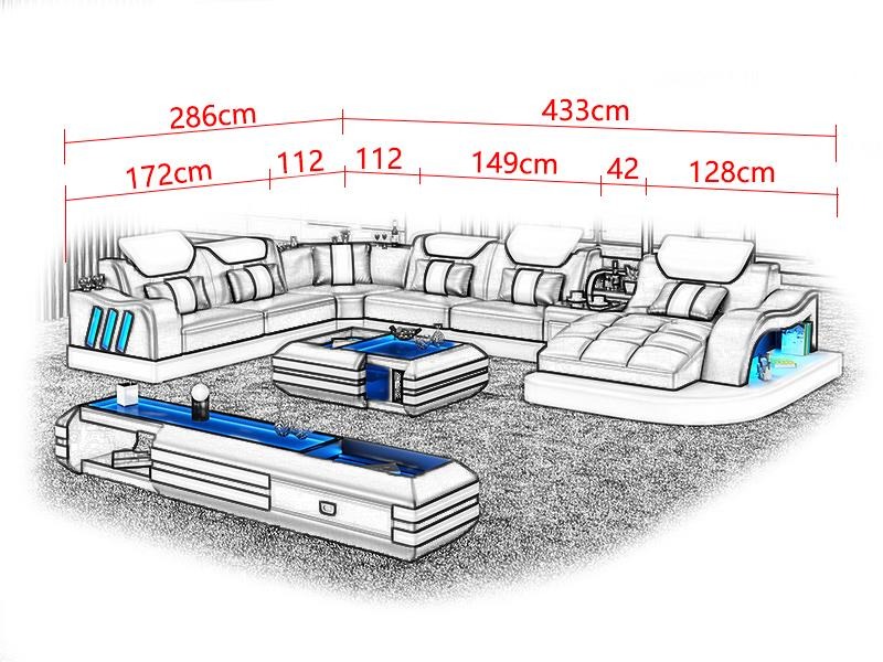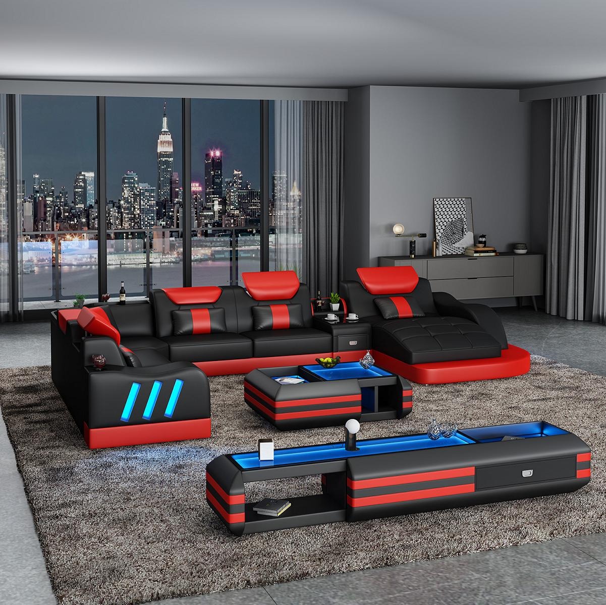 Personaliseer je ervaring met het optionele SOFA TUNNING, zoals een elektrische Relax-Fußstütze voor extra comfort of een Soundsystem met Bluetooth-connectiviteit voor entertainment. De mogelijkheid om te kiezen uit verschillende bekledingsmaterialen en extra aanpassingen, zoals onderbodemverlichting met kleurverandering, geeft jou de vrijheid om je hoekbank set aan te passen aan jouw persoonlijke stijl en behoeften. Met een stevig binnenframe van echt hout en Italiaans Rindsleder van hoge kwaliteit, is deze moderne 3-delige set een investering in comfort en stijl voor jouw huis.