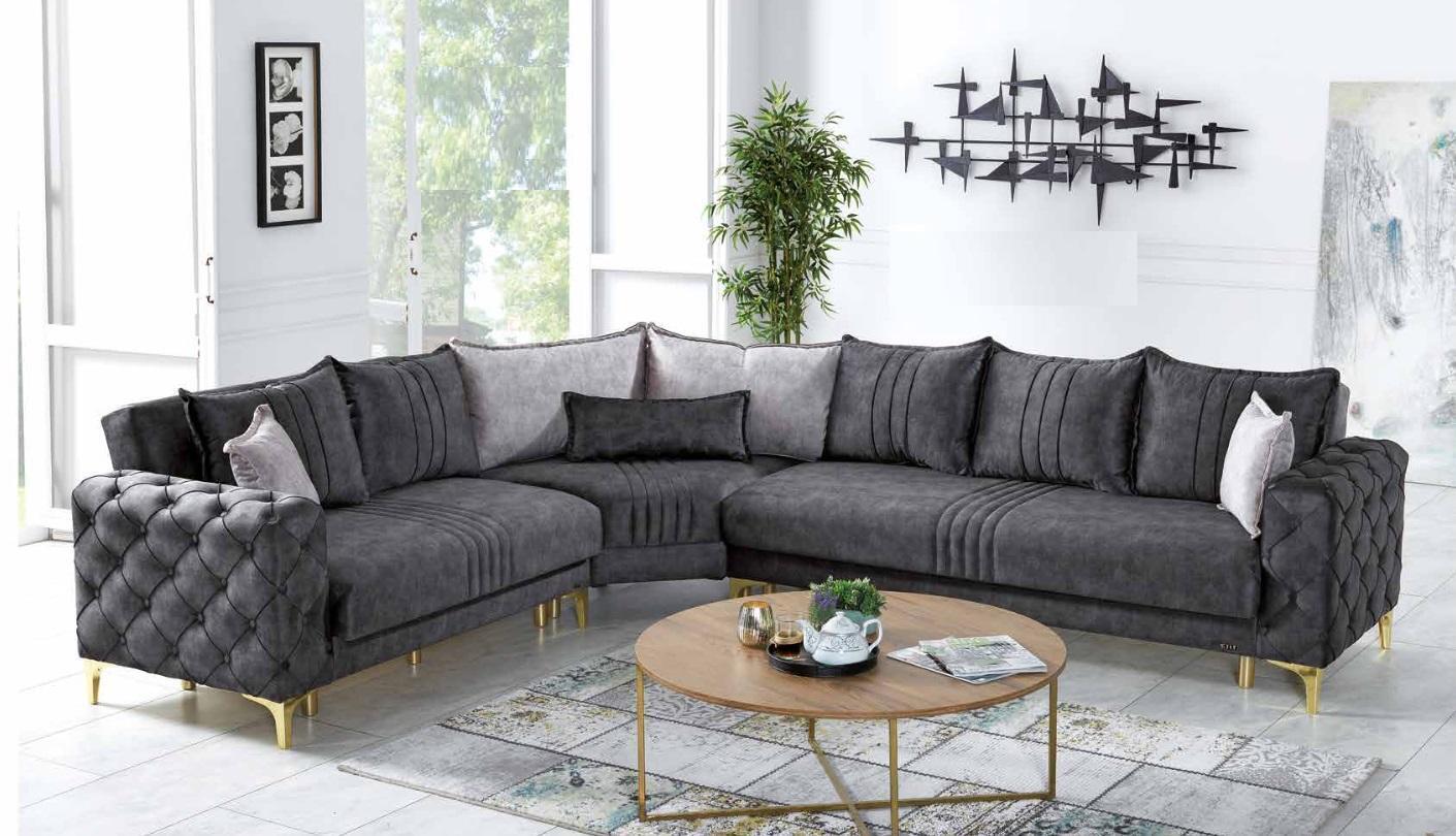 Grijze woonkamer hoekbank L-vormig Modern Chesterfield Nieuwe luxe bankstel