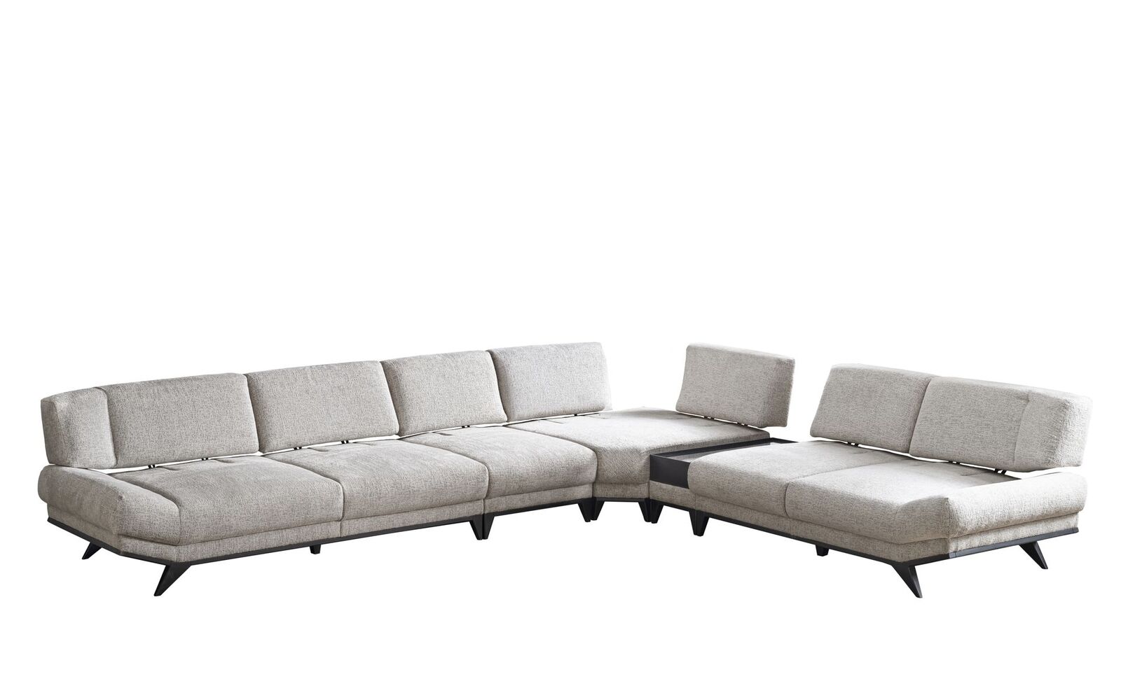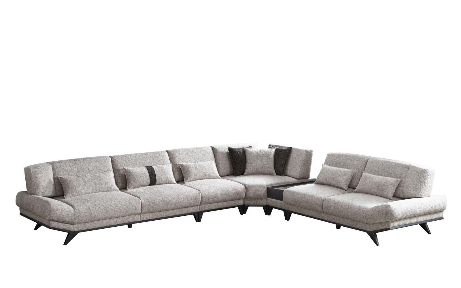 Grijze woonkamer bank L-vormige zithoek hoekbank gestoffeerde bank nieuw