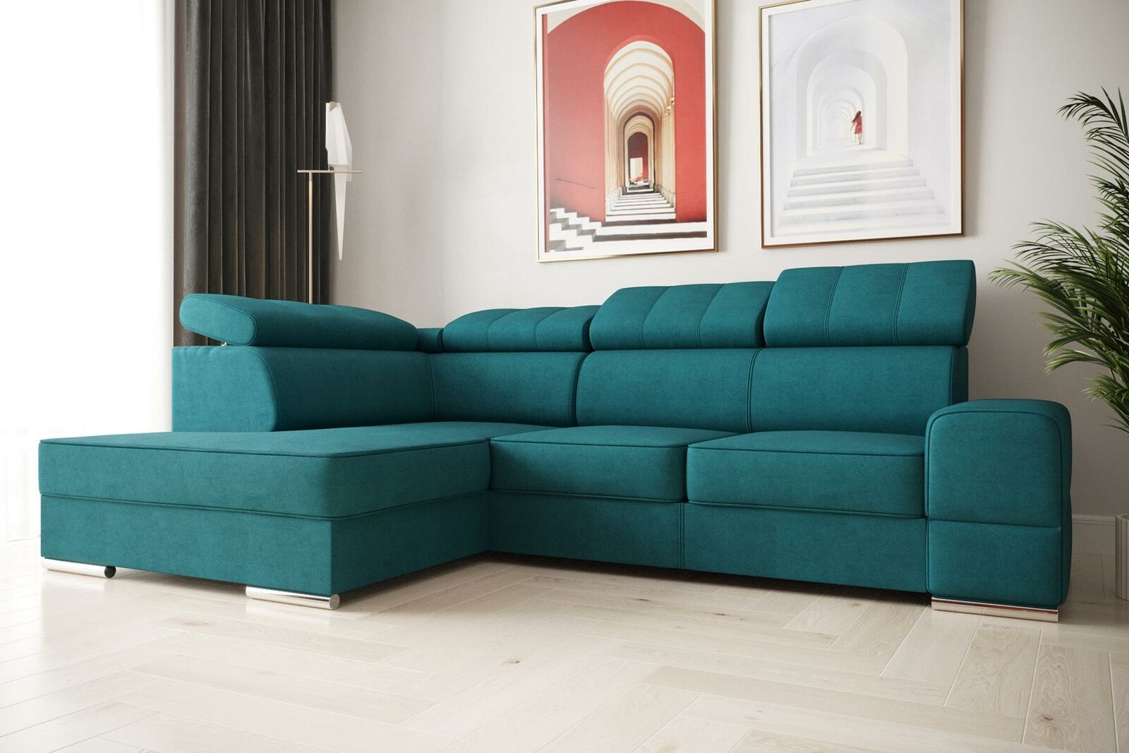 Hoogwaardige bank, woonkamer meubels, hoekbank, L-vormige bank, slaapfunctie.