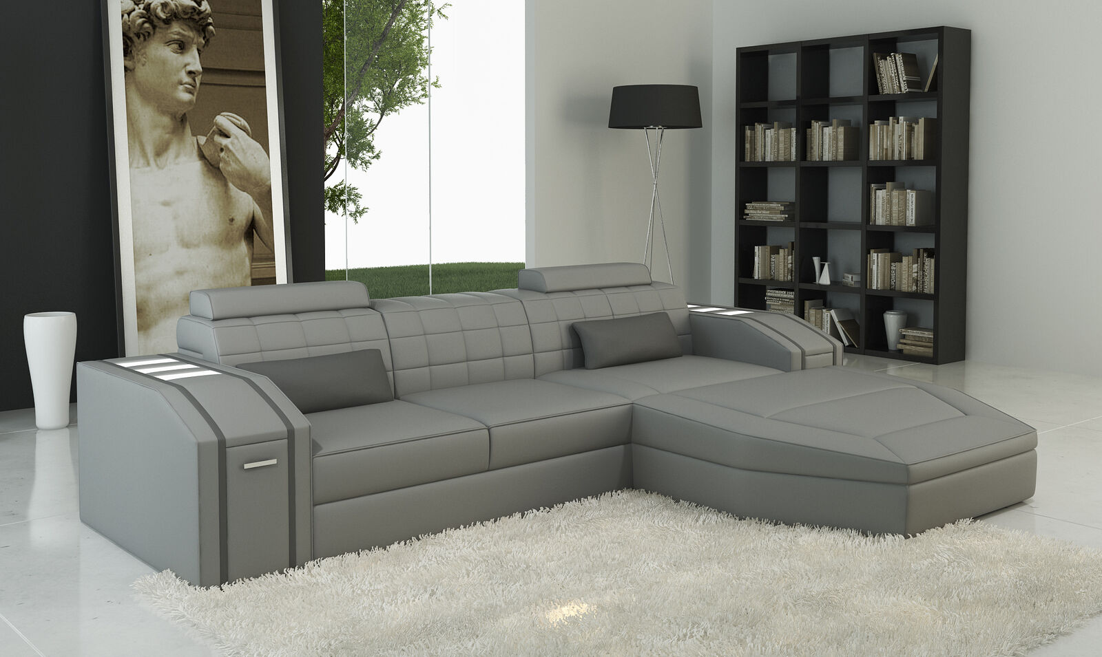Verlichte woonkamer lederen bank bank hoekbank modulaire bank groot