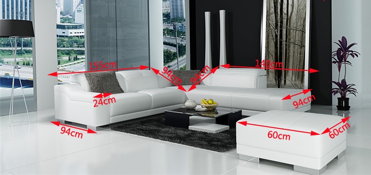 L-vormige bank, grote bank, moderne meubels, zachte ottomaan, woonkamermeubels