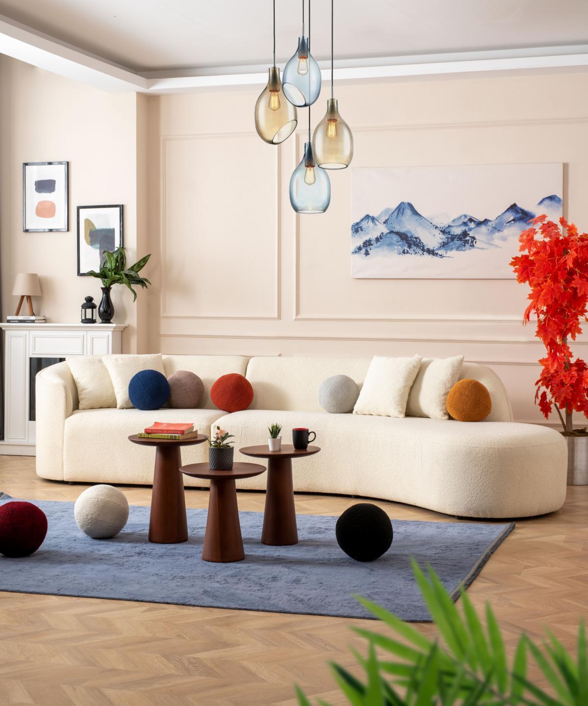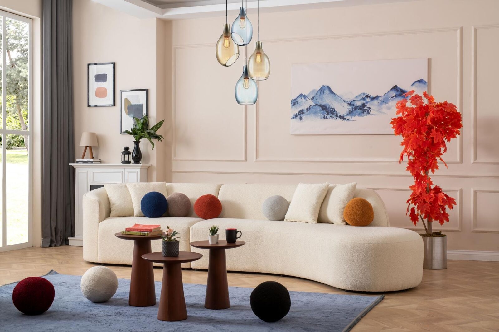 Witte designbank, L-vormige hoekbank, moderne meubels, luxe woonkamer, stijlvolle hoekbank