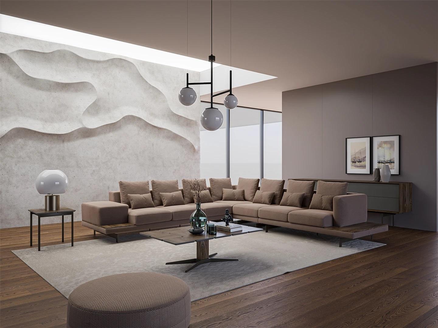 Designer woonkamerset 3-delig gestoffeerd hoekbank L-vorm hout salontafel nieuw