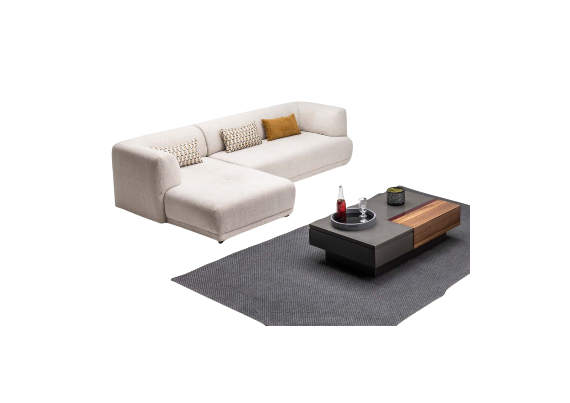 De L-vorm van dit bankstel maakt het een perfecte keuze voor elke hoek in uw woonkamer, optimaal gebruikmakend van de beschikbare ruimte. Dankzij het duurzame houten frame staat de bank garant voor lange levensduur en stabiliteit. Door zijn royale zitoppervlak kan deze bank ook dienen als een comfortabele plek om te ontspannen na een lange dag of om gezellige avonden met vrienden en familie door te brengen. Deze bank biedt niet alleen stijl maar ook functie, met genoeg ruimte om iedereen te accommoderen.