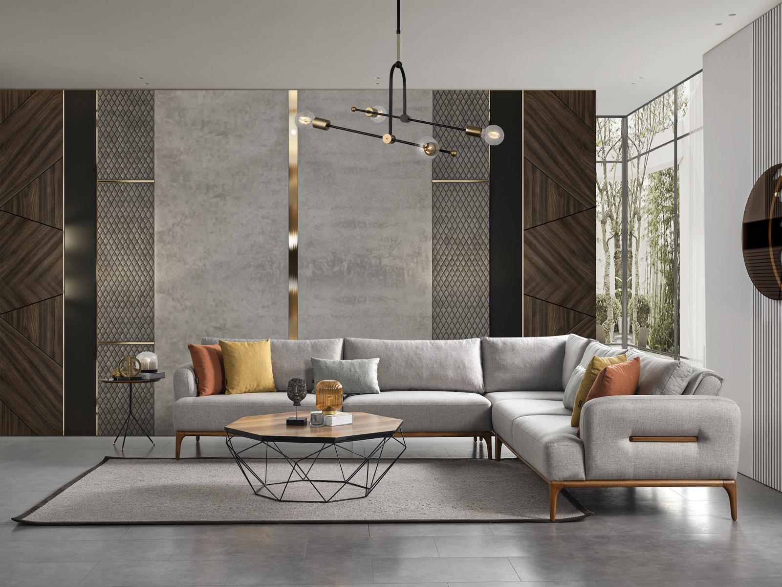 Hoekbank L-vorm bank woonkamer bekledingsontwerp nieuw grijs modern
