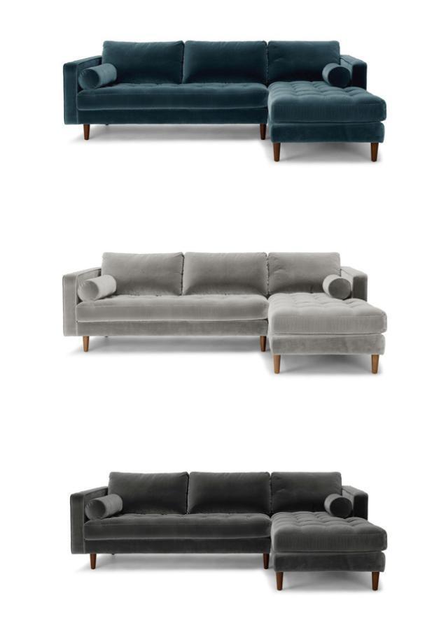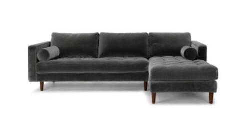 Hoekbank, bank op poten, stoffen bank, meubels.