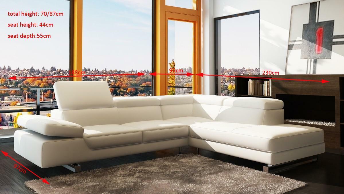 Hoekbank leren bank woonlandschap L vorm bank bank decoratie bekleding zitplaats hoek is een prachtige en luxe toevoeging aan elk interieur. Met afmetingen van ca. 230 x 280 cm of 280 x 230 cm en een hoogte van ca. 70/87 cm, biedt deze hoekbank genoeg ruimte voor ontspanning en comfort. Gemaakt van premium ledervezelstof (70% leder / 30% polyester), combineert deze bank stijl met duurzaamheid. De keuze van verschillende bekledingsmaterialen, waaronder echt leder en textielstof, geeft je de mogelijkheid om de bank aan te passen aan jouw persoonlijke smaak en behoeften. Met een zithoogte van ca. 44 cm en zitdiepte van ca. 55 cm, biedt deze hoekbank het perfecte evenwicht tussen stijl en comfort.