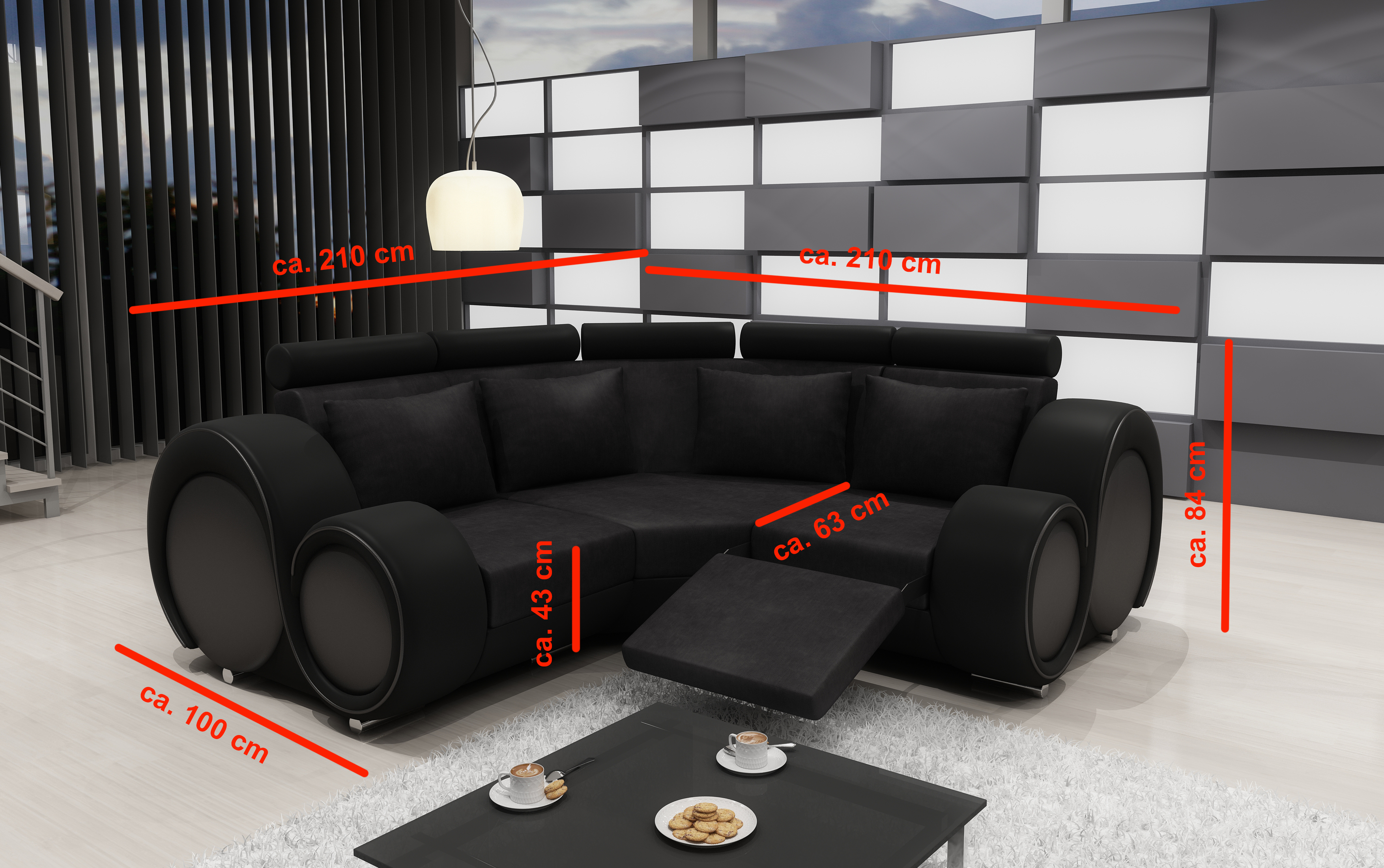 Hoekbank Bank Bank Bankstel Woonlandschap Textiel Hoekbankstellen Set Stof BER-X is een veelzijdige en stijlvolle hoekbank die perfect is voor elk modern interieur. Met afmetingen van ca. 210 cm aan zowel de linkerkant als de rechterkant, een hoogte van ca. 84 cm en een diepte van ca. 100 cm biedt deze bank voldoende ruimte en comfort. U kunt uw persoonlijke stijl kiezen door de vrije kleurkeuze te benutten en te kiezen uit verschillende materialen, waaronder premium kunstleer of textielstof. Het binnenframe van echt hout en de veerkern zorgen voor duurzaamheid en ondersteuning.