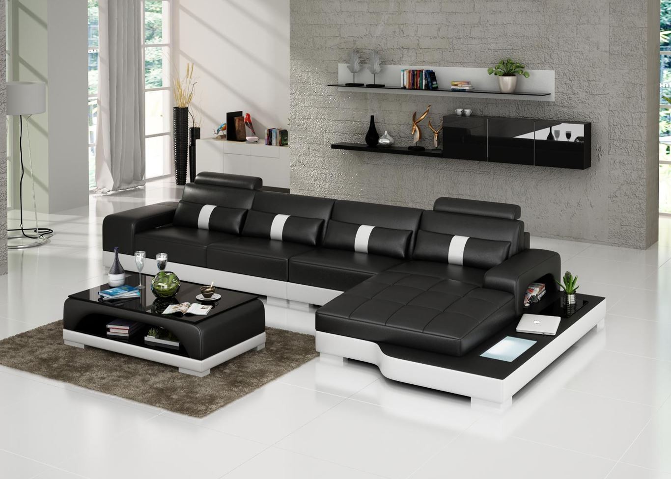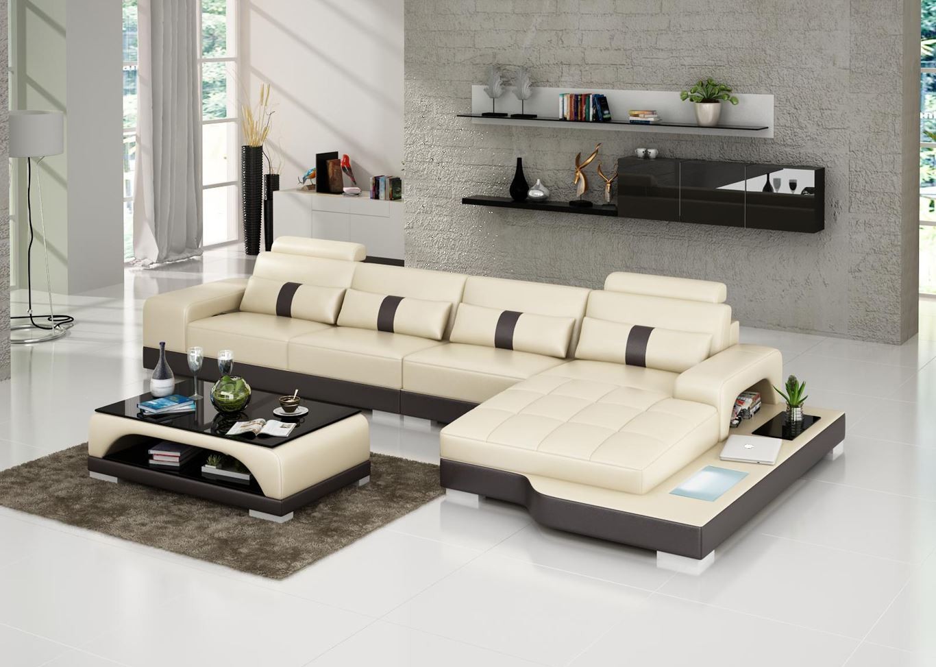 Hoekbank, woonkamer meubels, leren bank, designbank.