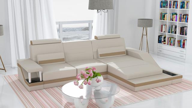 Hoekbank woonlandschap bank +USB hoekbank set leer textiel stof op maat gemaakt