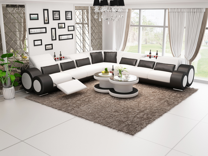 Woonlandschap Designerbank met USB Grote kussens Leren bankstellen Hoek Hoekbank Zwart