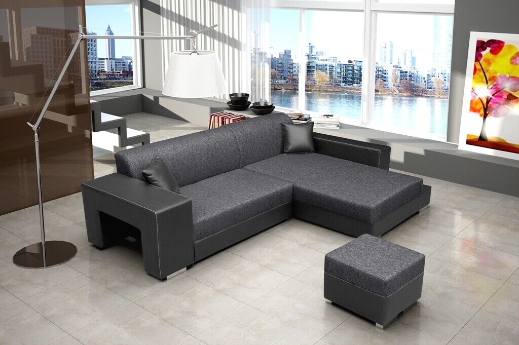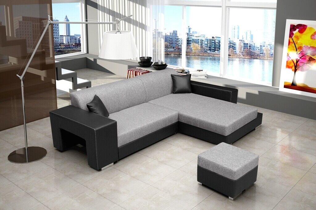 Slaapbank Hoekbank Bankbed-functie Bekleed hoekstel Slaapfunctie Nieuw is de perfecte combinatie van stijl en functionaliteit voor jouw woonruimte. Met afmetingen van ca. 290 x 177 cm, biedt deze L-vormige hoekbank zowel comfort als ruimtebesparing. Het hoogwaardige materiaal is naar keuze beschikbaar in stof of premium kunstleer van verschillende kwaliteitsgroepen, wat zorgt voor een luxe uitstraling. De slaapfunctie met een ligoppervlak van ca. 290 x 177 cm maakt deze hoekbank ideaal voor gasten of voor ontspannen middagdutjes. De bijgeleverde slaaplade en poef bieden extra gemak en functionaliteit.