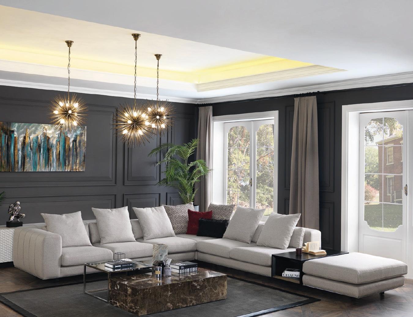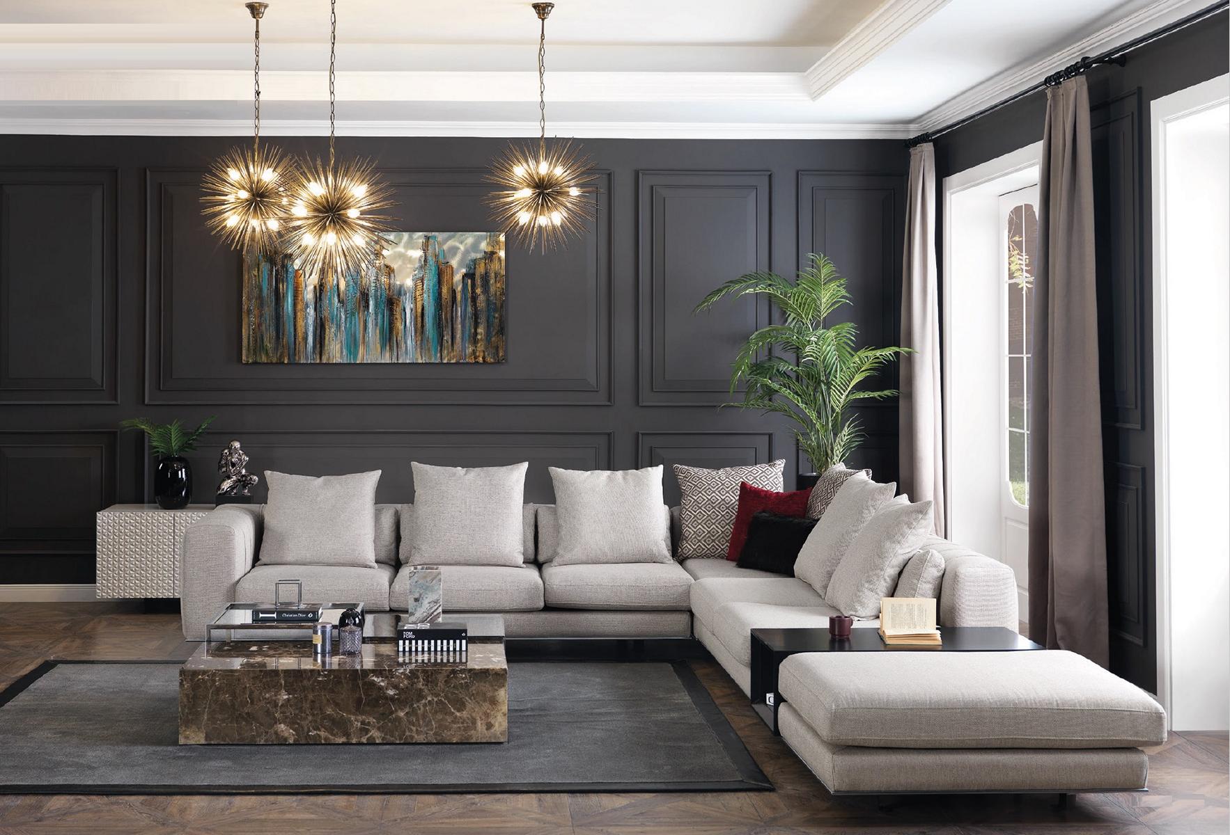 Woonlandschap Hoekbank Bank L-vorm Bank Zitplaatsen Textiel Bekleding Ontwerp
