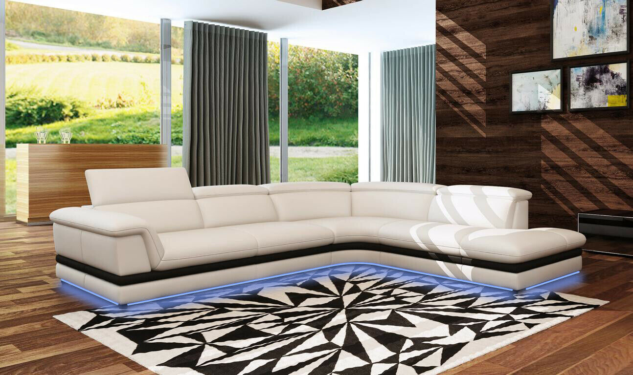 De Leren bank Bank Woonlandschap Hoekbank Hoekstel Modern Designbank 5130 is een stijlvolle en moderne toevoeging aan elk interieur. Met premium ledervezelstof bestaande uit 70% leder en 30% polyester, biedt deze hoekbank niet alleen comfort, maar ook duurzaamheid. De afmetingen van deze L-vormige hoekbank zijn indrukwekkend, met een lengte van ca. 318 x 280 cm of 280 x 318 cm, en een hoogte van ongeveer 82 cm. De zitdiepte van 60 cm en zithoogte van 40 cm zorgen voor ultiem zitcomfort. De vrije kleurkeuze maakt het mogelijk om deze hoekbank perfect aan te passen aan je persoonlijke stijl en interieur.