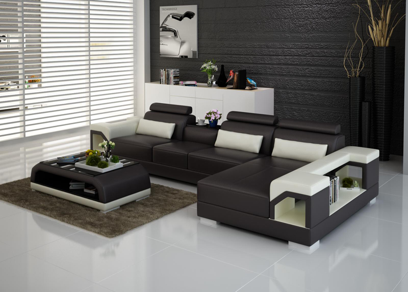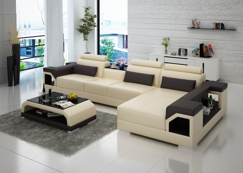 Leren bank Bank Woonlandschap Hoekbank Eck Set Ontwerp Modern Sofa G8010C
