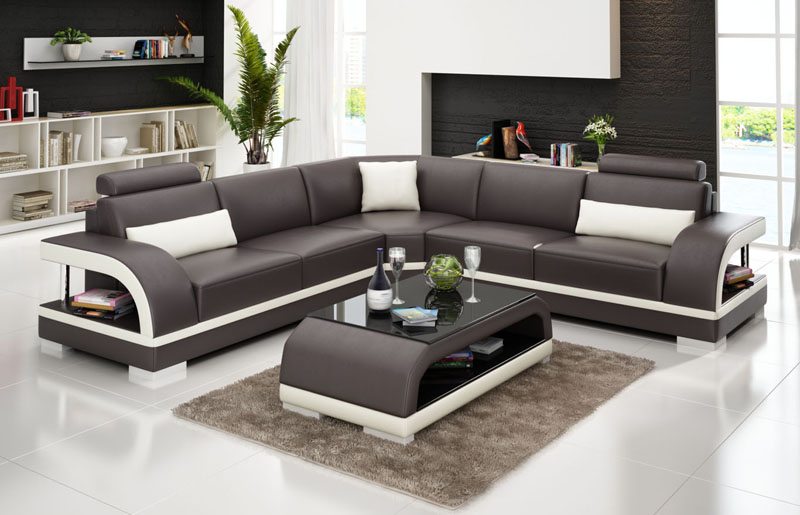 Leren bank Bank Woonlandschap Hoekbank Hoekbankstel Design Moderne Sofa G8011B