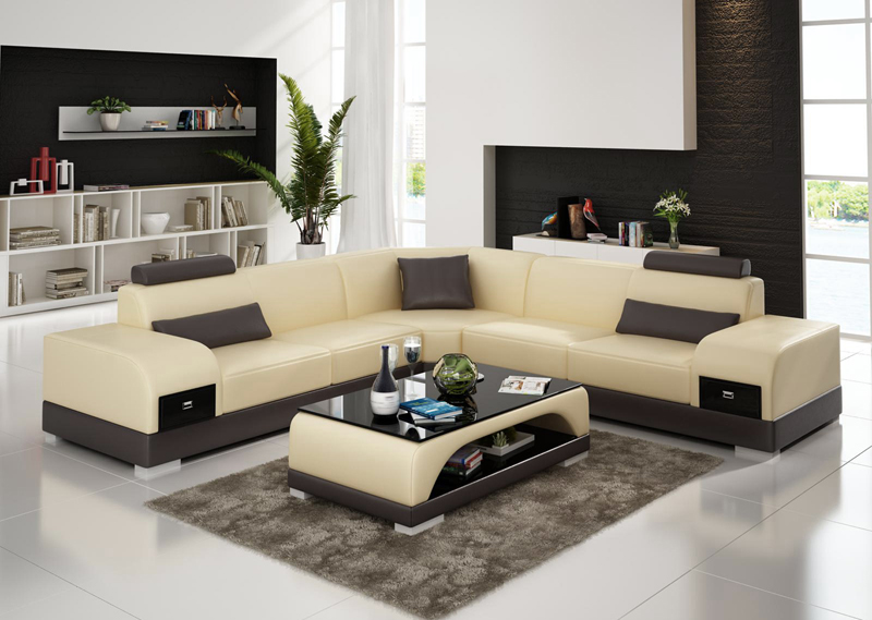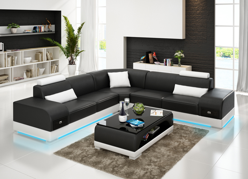 Leren bank Bank Woongebied Hoekbank Hoek Set Ontwerp Moderne Bank USB Nieuw