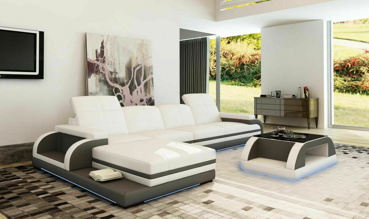 Leren bank bankstel woonlandschap L-vorm design moderne bank hoekbank bankstellen: Voeg een stijlvolle en moderne touch toe aan je woonkamer met dit prachtige L-vormige bankstel. Deze hoekbank biedt comfortabele zitplaatsen en is perfect voor ontspannen momenten of gezellig samenzijn met familie en vrienden. Uitgevoerd in premium ledervezelstof (70% leder / 30% polyester), combineert deze bank duurzaamheid met een luxe uitstraling. De afmetingen van ca. 187 x 375 cm of 375 x 187 cm passen perfect in hoeken van de kamer en bieden voldoende ruimte. Het stevige binnenframe van echt hout en de veringskern ondervering zorgen voor optimaal comfort, waardoor dit bankstel zowel praktisch als elegant is.