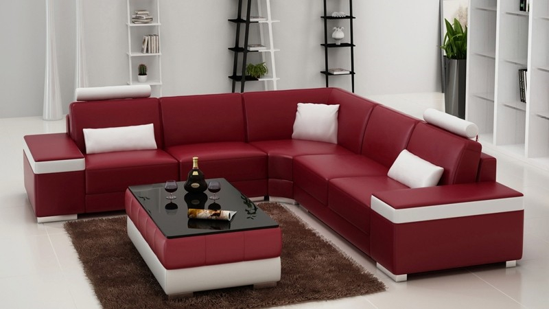 Leren bankstel meubels L-vorm bank woonlandschap hoekbank set ontwerp