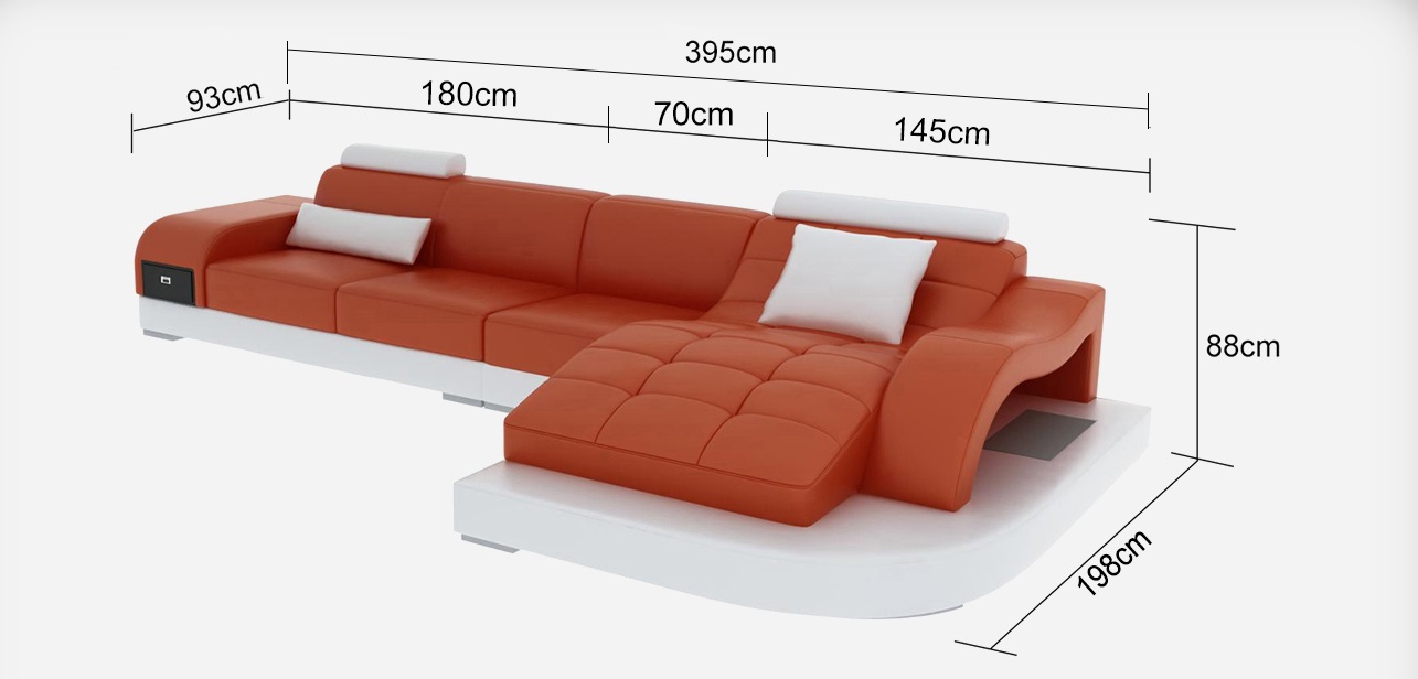 Leren bankstel met USB woonlandschap hoekbank hoek meubilair Design Modern Sofa G8009D is een prachtige L-vormige hoekbank die zowel stijl en comfort biedt aan elke woonkamer. Met afmetingen van ca. 198 x 395 cm kan dit bankstel in verschillende opstellingen worden geplaatst, waardoor het perfect is voor elke ruimte. Deze hoekbank is gemaakt van hoogwaardig premium ledervezelstof (70% leder / 30% polyester), wat duurzaamheid en luxe uitstraalt. Het wordt geleverd met een USB-Klikautomaat (3-voudige aansluiting) INCLUSIEF, wat handig is voor het opladen van elektronische apparaten.