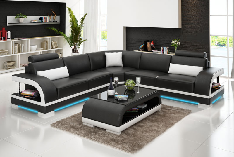 Leren bank met USB, woonlandschap hoekbank hoek bankstel design Modern bankstel G8011B