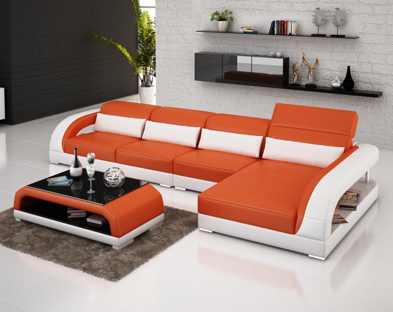 Leren bankstel met USB, woonlandschap hoekbank hoekstel modern design bank G8016C.
