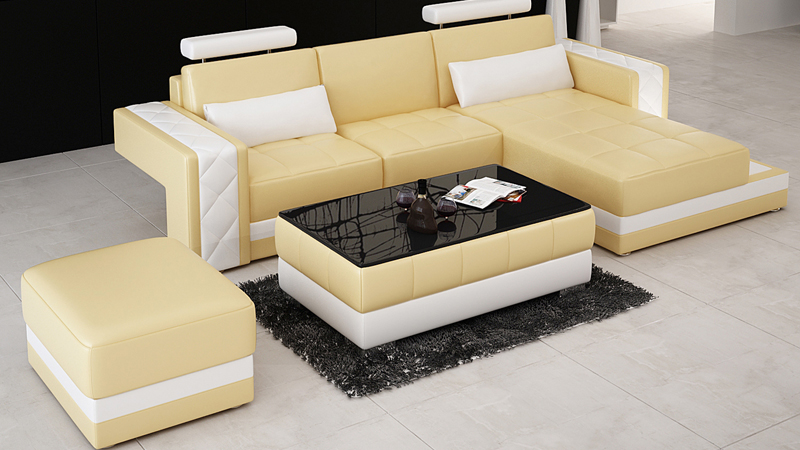 Leren bank met USB woonlandschap hoekbank hoekstel modern ontwerp moderne bank L6010D.