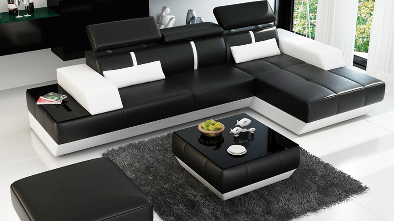Leren bank Bank met USB, Woonlandschap hoekbank set Design Modern Bank K5015C