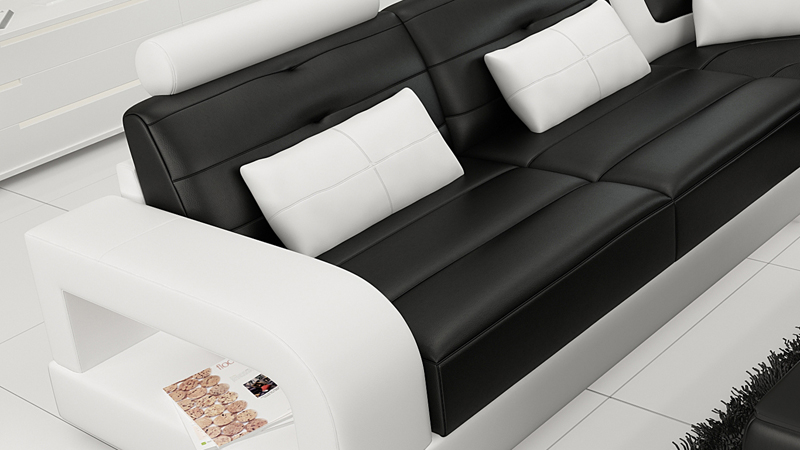In de winkel heb je diverse opties om het bankstel naar jouw wensen aan te passen. Kies uit verschillende groepen bekledingsmaterialen, zoals premium echt leder of textielstof, voor een persoonlijke touch. Daarnaast is er de mogelijkheid om tegen een meerprijs te kiezen voor ondergrondverlichting met afstandsbediening voor kleurverandering. Het bankstel is niet alleen comfortabel en functioneel, maar ook een blikvanger in elke woonkamer. Ontspan in stijl en geniet van het hoogwaardige vakmanschap en design van dit L6008B hoekbankstel.